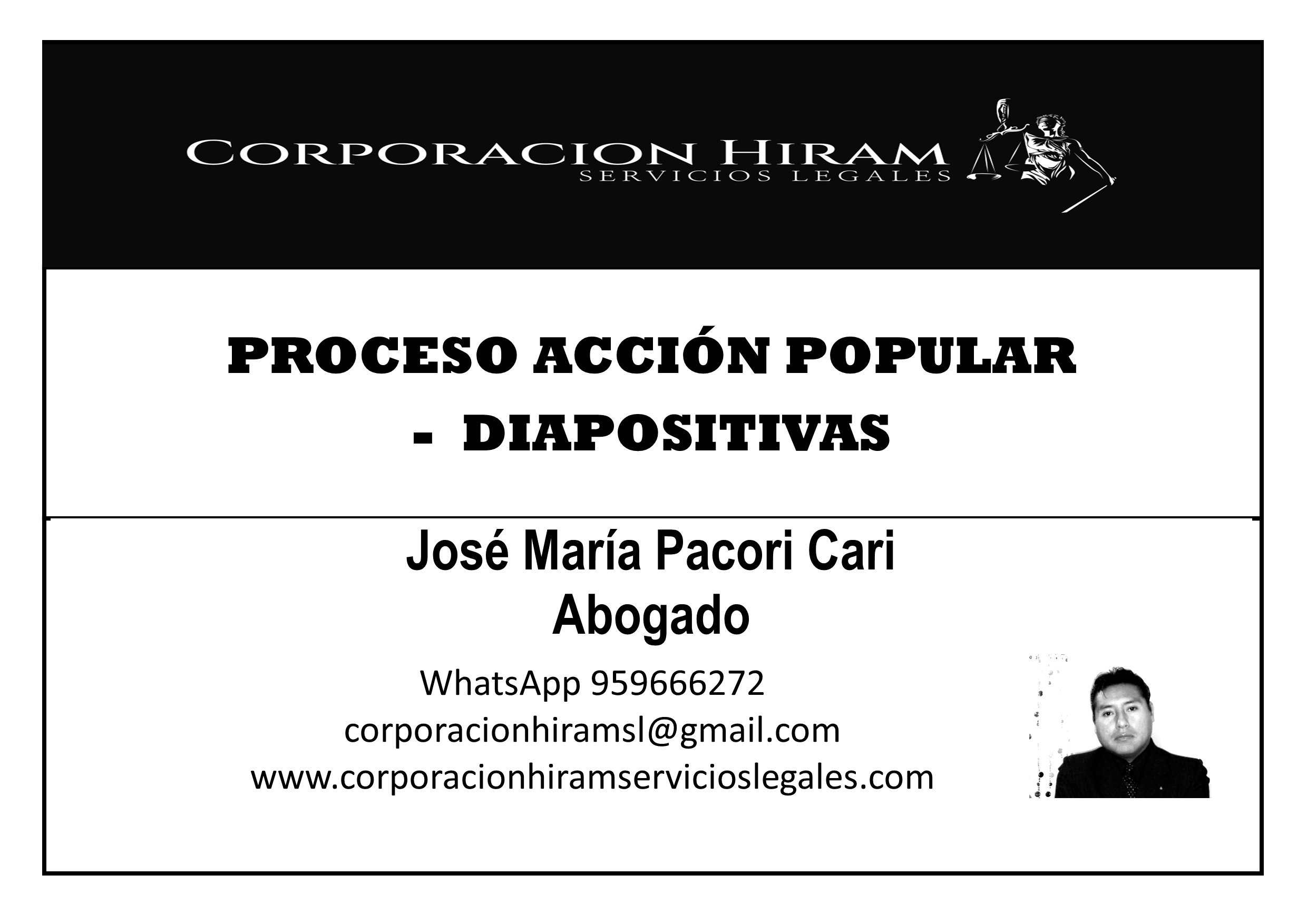 La acción popular es un proceso judicial que permite impugnar reglamentos o resoluciones administrativas generales que vulneren la Constitución o las leyes. Busca garantizar el respeto al orden jurídico, preservando la supremacía de la ley. Cualquier ciudadano puede interponer la demanda, dentro de un plazo de cinco años desde su publicación. “Porque al servir a los demás seremos libres” (José María Pacori Cari).