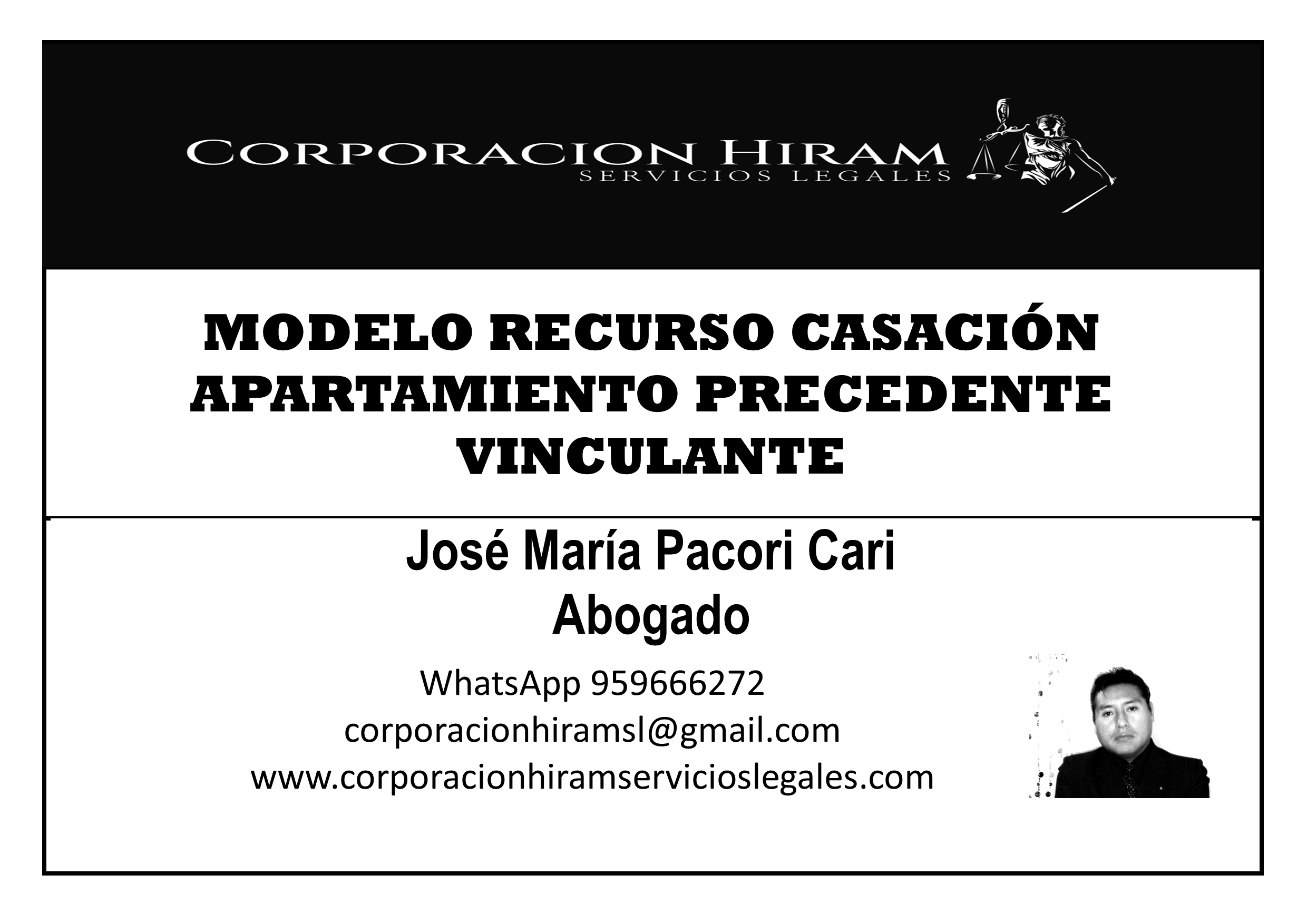 Este modelo de recurso de casación permite cuestionar sentencias judiciales que se alejan injustificadamente de precedentes vinculantes establecidos por la Corte Suprema o el Tribunal Constitucional, conforme al Código Procesal Civil peruano. Es una herramienta clave para garantizar la uniformidad y previsibilidad en la interpretación del derecho en segunda instancia. “Porque al servir a los demás seremos libres” (José María Pacori Cari).