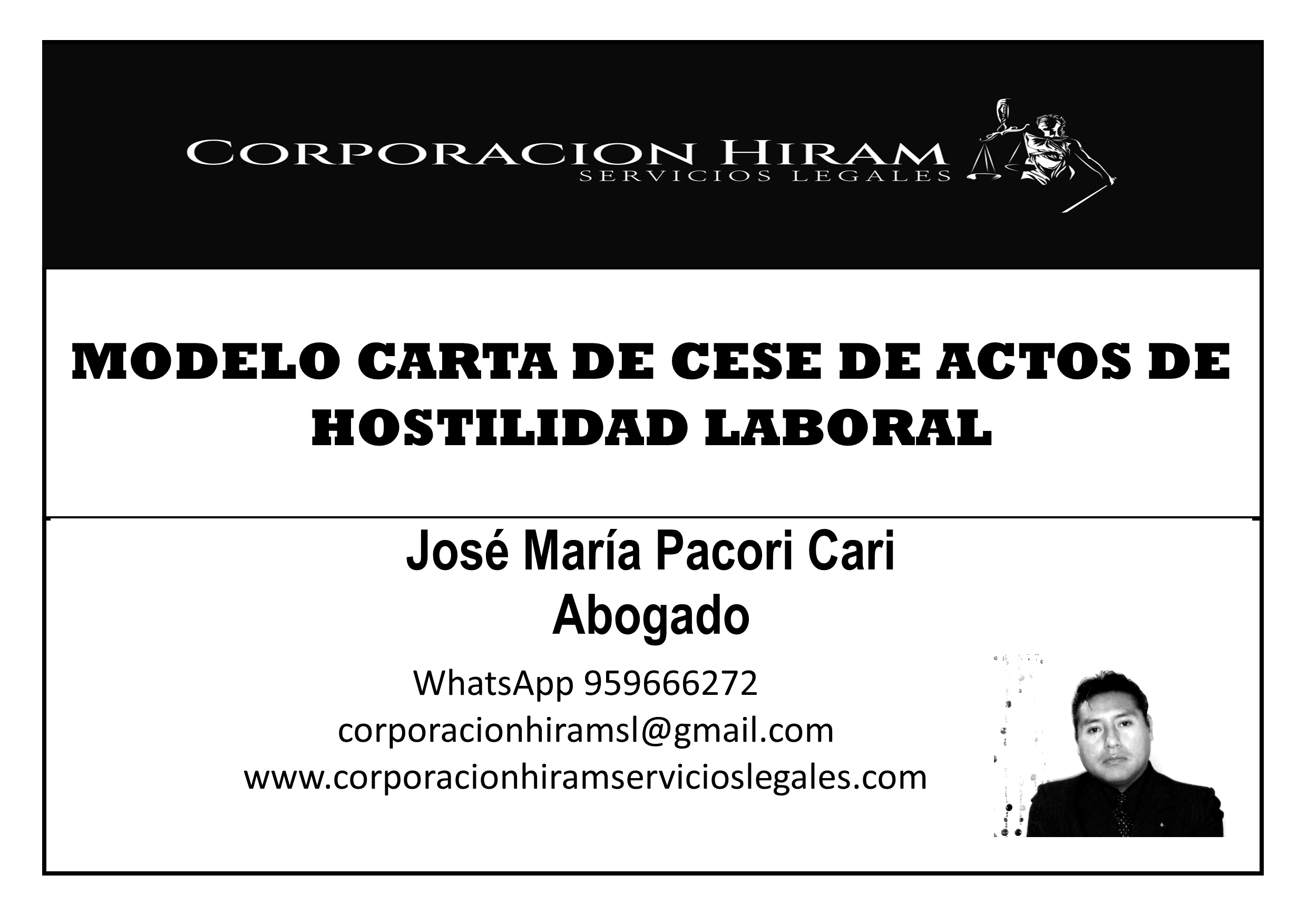 Este modelo de carta permite al trabajador exigir al empleador el cese de actos de hostilidad laboral, como reducción salarial o vulneración de dignidad. Se sustenta en el Decreto Legislativo 728 y jurisprudencia vigente, otorgando un plazo de respuesta antes de iniciar acciones judiciales para proteger sus derechos laborales. “Porque al servir a los demás seremos libres” (José María Pacori Cari).