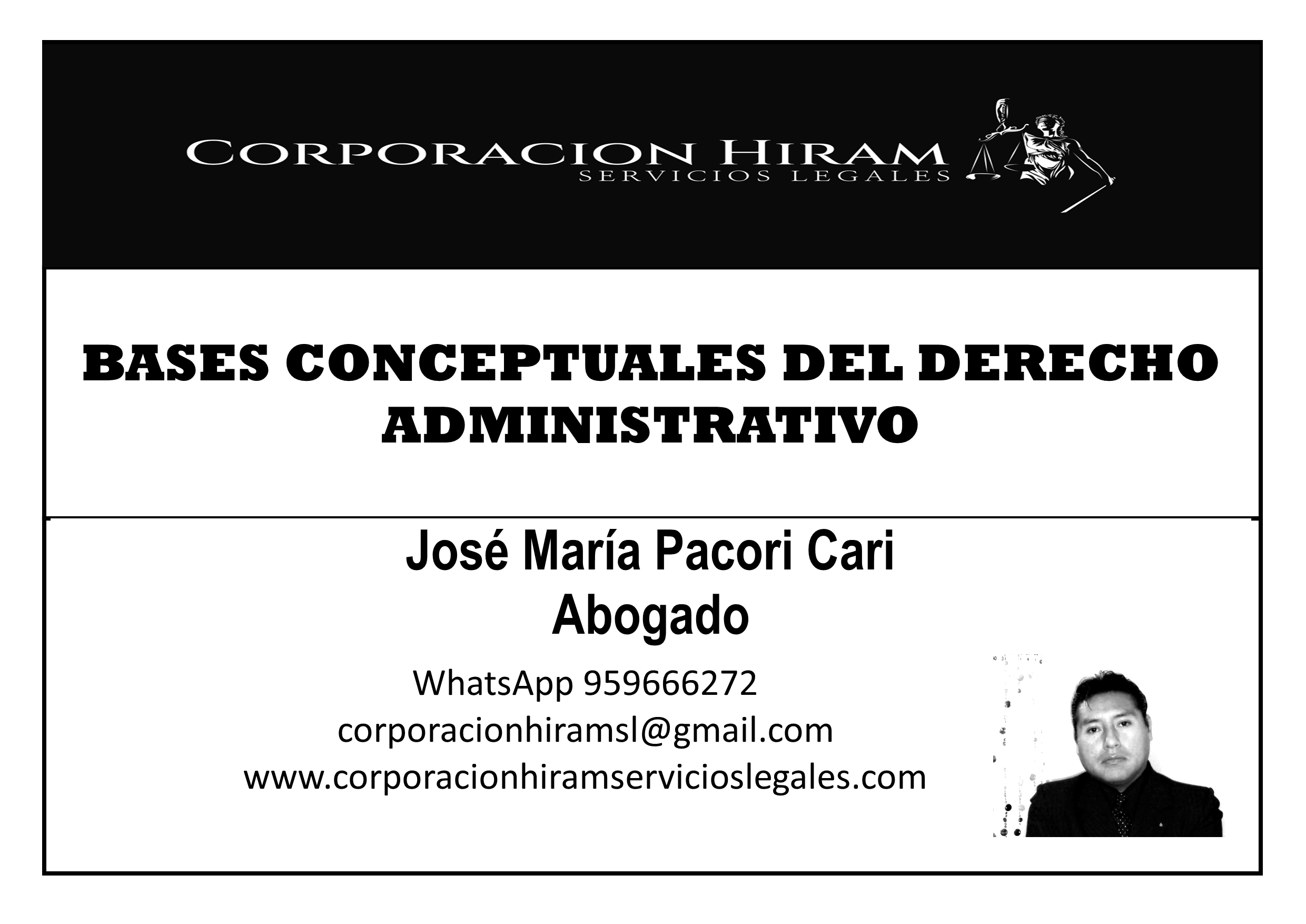 Expone los fundamentos del Derecho Administrativo, definiendo la administración pública en sentido orgánico y funcional. Desarrolla las fuentes formales e informales, los principios como legalidad y discrecionalidad, y la ubicación del derecho administrativo dentro del derecho público, regulando relaciones entre Estado y administrados. “Porque al servir a los demás seremos libres” (José María Pacori Cari).